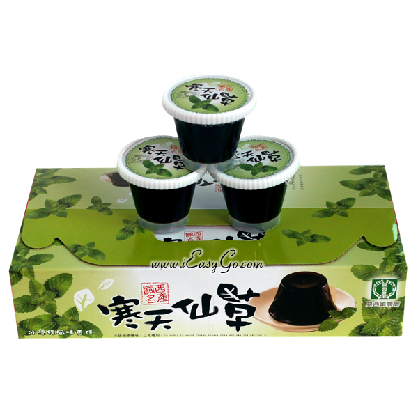產品名稱: 寒天仙草 產品規格: 一盒/8入 產品說明: 寒天仙草含豐富的礦物質、植物性膠質,零脂肪、無負擔,食用後有飽足感,更能體內環保。