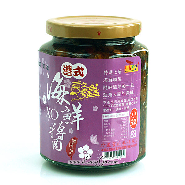 > 澎湖菊之鱻-海鮮干貝醬.XO醬.. > 缺貨中-澎湖 菊之鱻 港式海鮮XO醬 450公克(微辣)*1罐一口吃進海中珍寶特選上等海鮮精製 隨時隨地加一匙就是人間美味