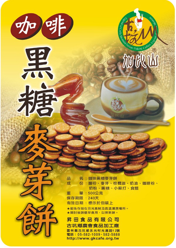 成分:麵粉、麥芽、棕櫚油、奶油、咖啡粉、奶粉、黑糖、鹽