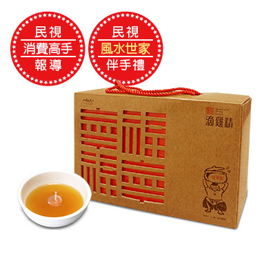 滴雞精製作採純手工、隔水悶烤方式,將雞隻骨肉內的養份化為雞汁菁華,一滴一滴的落下、蒐集,收汁過程不加一滴水,全程耗時六小時以上,一隻兩斤半重的雞,只能煉出300cc的滴雞精,十分珍貴。