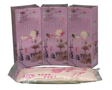 蓮藕粉沖泡方法: 鍋內水約 3000cc,煮沸後拿起150公克的藕粉一手撒散,一 手均勻攪拌,待溶解加糖後熄火。 (水量與藕粉、糖的多寡依 個人喜好斟酌 )