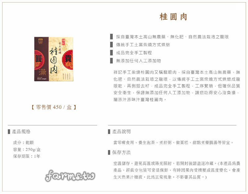 成分: 龍眼 容量: 250 g / 盒 保存期限: 1 年