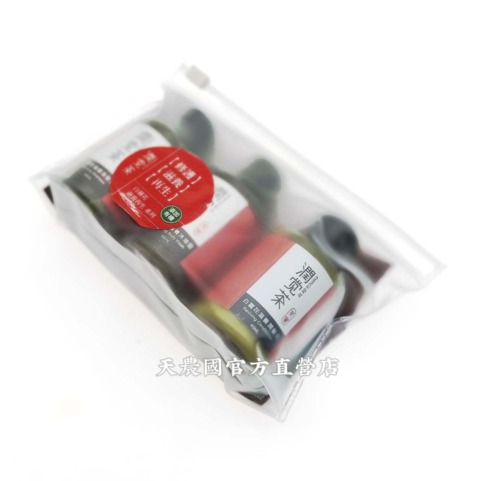 潤覺茶-白薑花系列組合, 輕巧包裝旅行出遊隨身帶著走! 茶寶潤覺茶白薑花旅行組(洗髮露45ml+沐浴露45ml+潤髮乳45ml)*1霧面拉鍊袋 產地台灣 產品請勿直射陽光,並置放陰涼處 如不慎接觸眼睛,請以大量清水沖洗;若不慎誤食請盡速飲用大量水後就醫