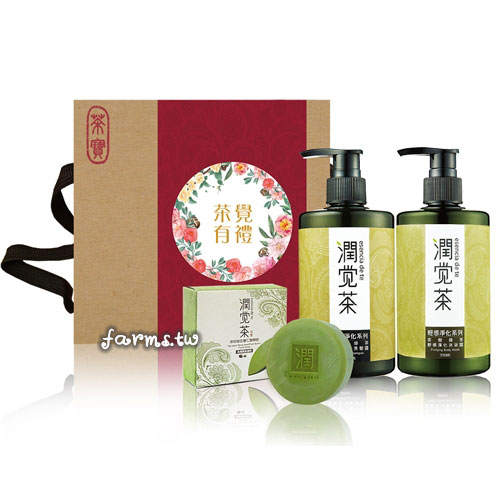 【茶寶 潤覺茶】茶樹綠茶輕感淨化控油禮盒3件組(含:洗髮露x1、沐浴露x1、綠豆皂x1)