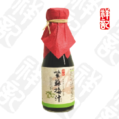 > 祥記 煉梅.紫蘇梅.梅子 > 梅子漿醋.楊桃汁.紫蘇梅汁.果醬.桂圓肉 > [ 祥記 ] 紫蘇梅汁150ml*3瓶~梅子精華香醇成分: 台灣青梅、紫蘇葉、海鹽、甘蔗糖 產品說明: 可當茶食、零嘴、亦可入菜、調製冷、熱飲料。 示範食譜:【梅風油醋醬】 材料:紫梅汁2大匙、梅醋1大匙、橄欖油2大匙、蜂蜜1大匙、黑胡椒粒1/3小匙 作法:將上述材料攪拌均勻即可