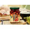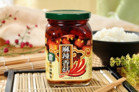 成份: 香菇、朝天椒、酸菜、黃豆豉(基因改造)、菜脯、花瓜、麻油、大豆油、砂糖、辣椒紅、番茄醬、L-麩酸鈉、大豆軟磷脂、花椒、一品香(桂節、大茴、小茴、丁香枝)、豆干(基因改造) )[豆皮、甘油、砂糖、大豆油、鹽、辣椒、乳酸、甘草、檸檬酸、一品香(桂節、大茴、小茴、丁香枝)]