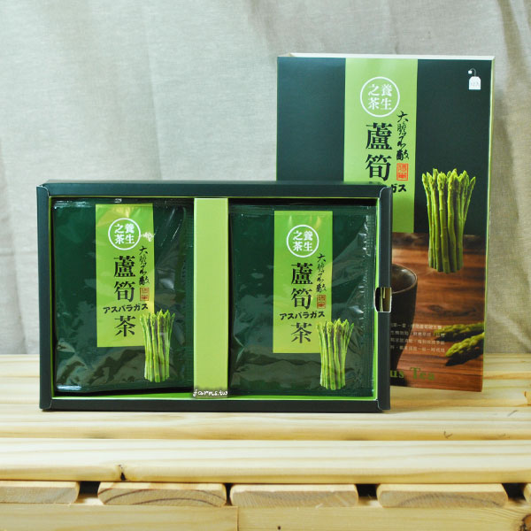 將蘆筍茶包放入杯中,加入200c.c.熱開水(95℃以上),約2分鐘即可飲用(也可使用悶燒杯)蘆筍