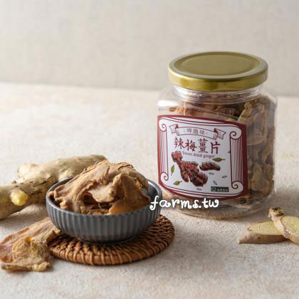 辣梅薑片:使用台灣老薑母薑片做成果乾,搭配酸甜梅汁