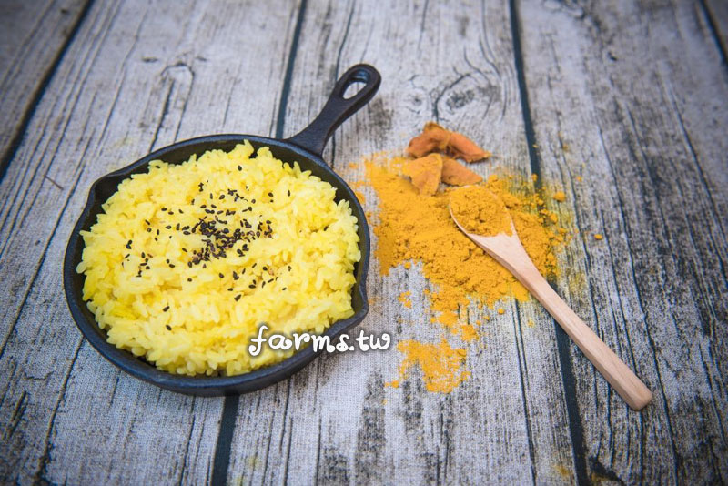 *薑黃飯:洗好米後,加入1~2匙薑黃粉、數滴食用油,依一般做法煮熟即可享用。
