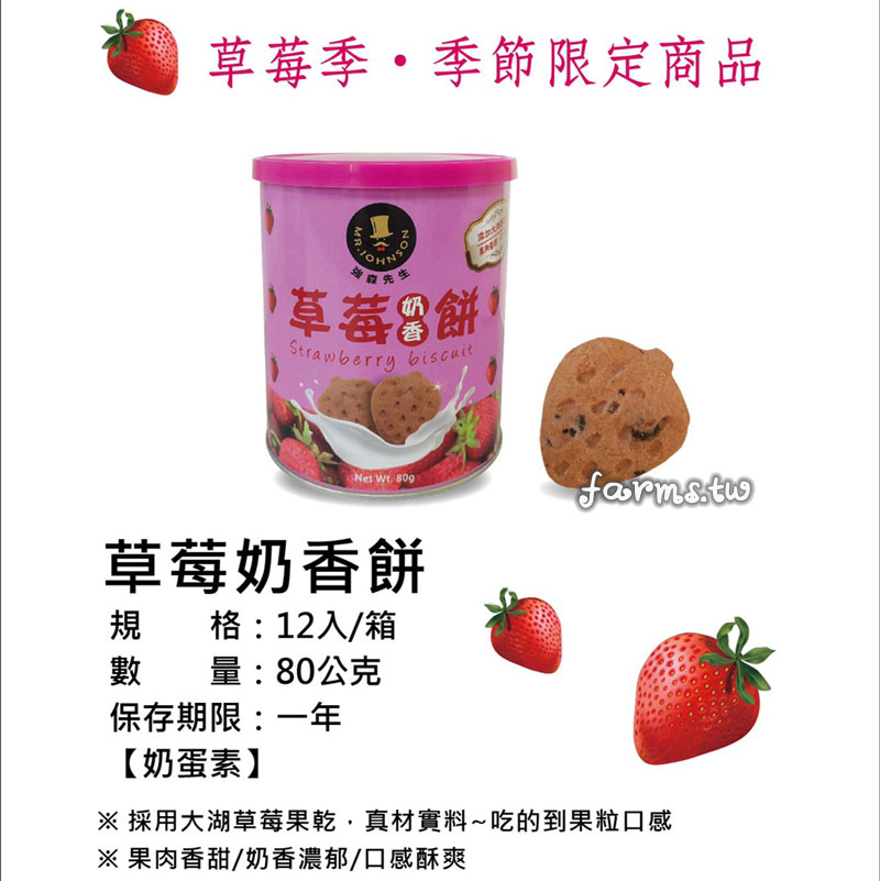*[富強森-強森先生]草莓奶香餅(奶蛋素) 80g*1罐~採用大湖草莓果乾,真材實料,吃的到果粒口感