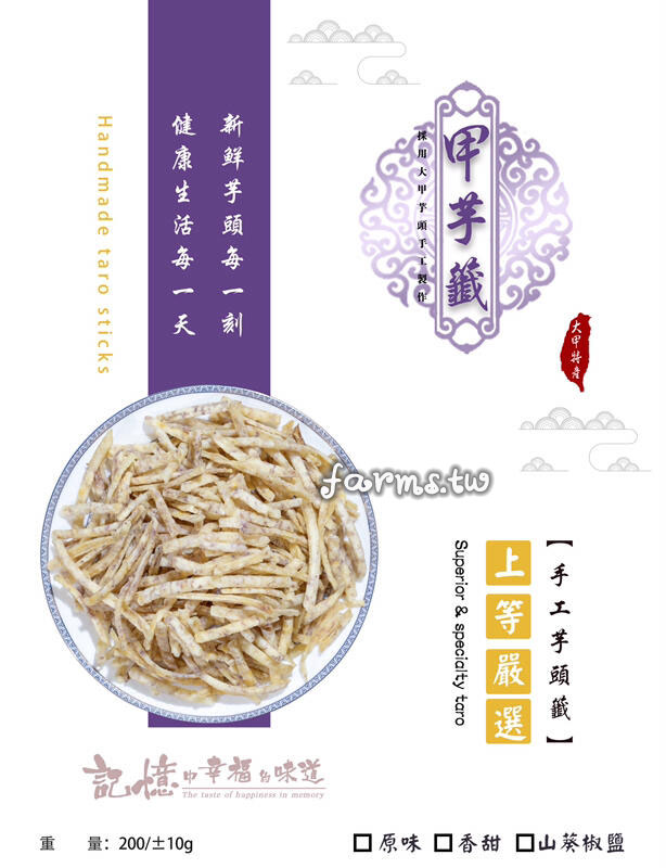 銷售一空[大甲特產-甲芋籤] 甲芋籤-"山葵椒鹽"200g*1包~手工芋籤酥