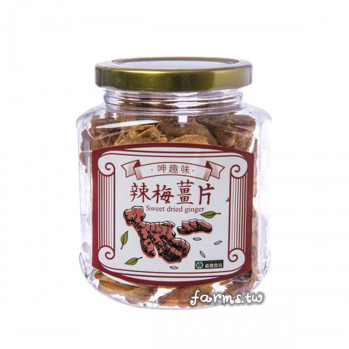 辣梅薑片:使用台灣老薑母薑片做成果乾,搭配酸甜梅汁