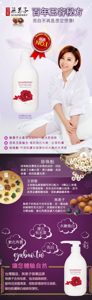 重量或容量:450ml 使用方式:取適量古寶無患子玉容沐浴精華乳,加水搓揉後,均勻的塗抹及按摩身體肌膚後,以清水沖洗乾淨即可 保存方法:請置於陰涼處,避免陽光直射 保存期限:三年