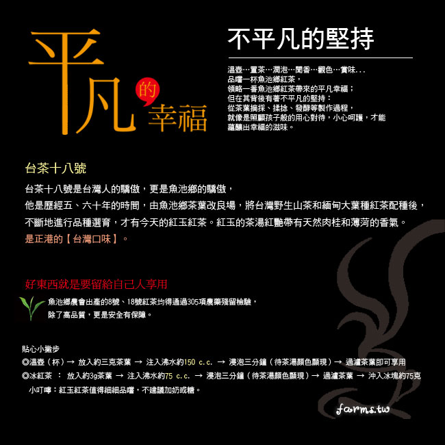 > 魚池鄉農會日月潭紅茶 > 魚池鄉農會紅茶-茶葉/樂活包 > [南投縣魚池鄉農會-日月潭紅茶館] 魚池農會 台茶18號-紅玉樂活包-150g*1包每一批茶葉受天候.溫度.濕度...等因素影響,喝起來口感可能會不太一樣,建議會員可以接受這個自然現象再下單