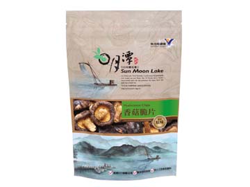 品名 香菇脆片 -- 黑胡椒 規格 素 重量 90克 保存期限:十個月 包裝袋富有濃厚的日月潭特色